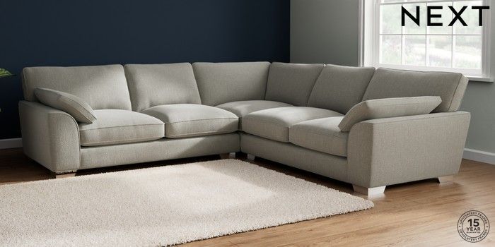 7.2.10 Stamford Grand Relaxed Sit Large Corner Sofa - Universal Chunky Texture Dove Large Square Angle - Chrome Metal | Made Click here to use our website with more accessibility support, for example screen readers