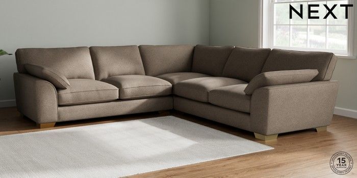 7.2.10 Stamford Grand Relaxed Sit Large Corner Sofa - Universal Chunky Weave Dark Natural Large Square Angle - Brushed Brass | Made Click here to use our website with more accessibility support, for example screen readers