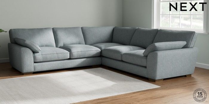 7.2.10 Stamford Grand Relaxed Sit Large Corner Sofa - Universal Chunky Weave Mid Blue Large Square Angle - Mid | Made Click here to use our website with more accessibility support, for example screen readers