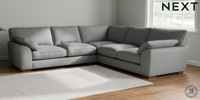 7.2.10 Stamford Grand Relaxed Sit Large Corner Sofa - Universal Chunky Weave Mid Grey Large Square Angle - Mid | Made Click here to use our website with more accessibility support, for example screen readers