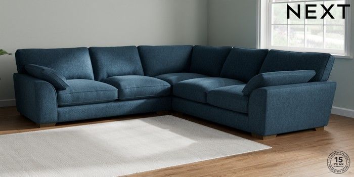 7.2.10 Stamford Grand Relaxed Sit Large Corner Sofa - Universal Cotswold Chenille Dark Blue Large Square Angle - Mid | Made Click here to use our website with more accessibility support, for example screen readers