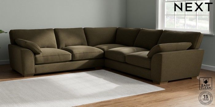 7.2.10 Stamford Grand Relaxed Sit Large Corner Sofa - Universal Fine Chenille Easy Clean Dark Moss Green Large Square Angle - Mid | Made Click here to use our website with more accessibility support, for example screen readers