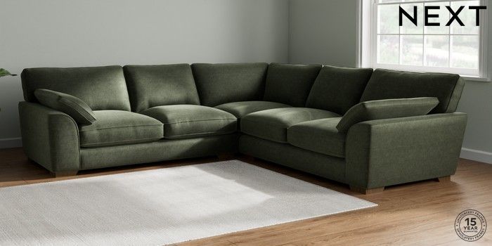7.2.10 Stamford Grand Relaxed Sit Large Corner Sofa - Universal Luxe Chenille Mid Green Large Square Angle - Mid | Made Click here to use our website with more accessibility support, for example screen readers