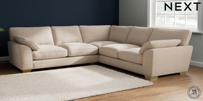 7.2.10 Stamford Grand Relaxed Sit Large Corner Sofa - Universal Multi Weave Mid Natural Large Square Angle - Brushed Brass | Made Click here to use our website with more accessibility support, for example screen readers