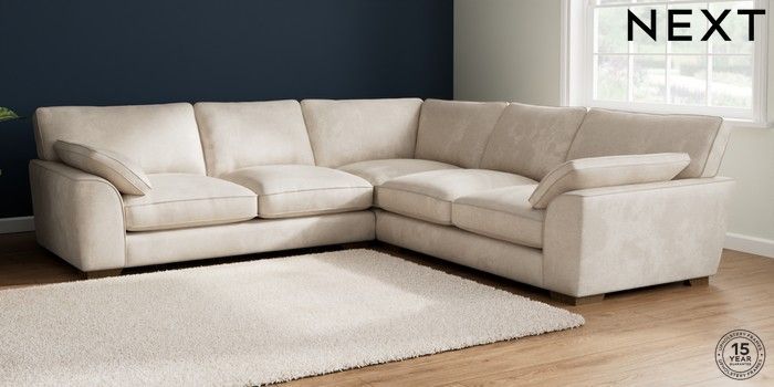 7.2.10 Stamford Grand Relaxed Sit Large Corner Sofa - Universal Plush Chenille Oyster Large Square Angle - Mid | Made Click here to use our website with more accessibility support, for example screen readers