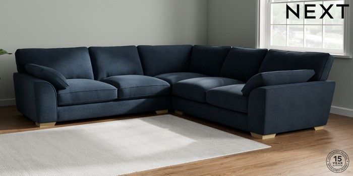 7.2.10 Stamford Grand Relaxed Sit Large Corner Sofa - Universal Ripple Chenille Dark Blue Large Square Angle - Light | Made Click here to use our website with more accessibility support, for example screen readers