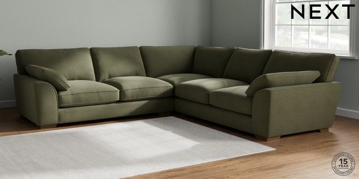 7.2.10 Stamford Grand Relaxed Sit Large Corner Sofa - Universal Ripple Chenille Mid Moss Green Large Square Angle - Mid | Made Click here to use our website with more accessibility support, for example screen readers