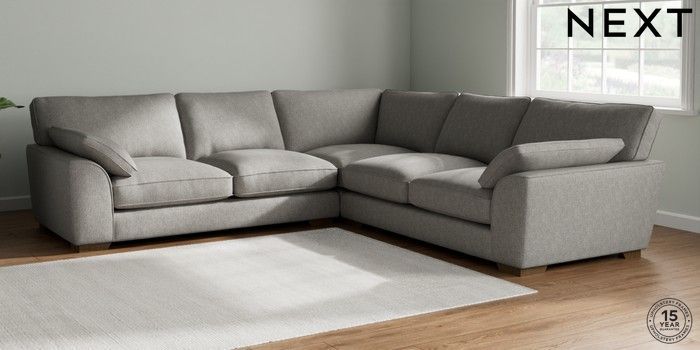 7.2.10 Stamford Grand Relaxed Sit Large Corner Sofa - Universal Tweedy Chenille Mid Grey Large Square Angle - Mid | Made Click here to use our website with more accessibility support, for example screen readers