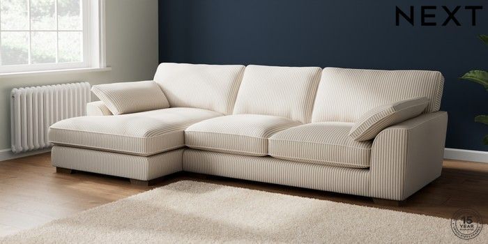 7.2.10 Stamford Grand Relaxed Sit Large Sofa Chaise - Left Hand Chenille Stripe Natural Large Square Angle - Mid | Made Click here to use our website with more accessibility support, for example screen readers
