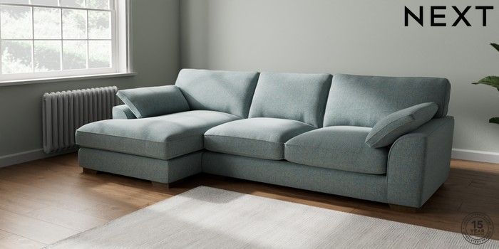 7.2.10 Stamford Grand Relaxed Sit Large Sofa Chaise - Left Hand Chunky Marl Mid Blue Large Square Angle - Mid | Made Click here to use our website with more accessibility support, for example screen readers