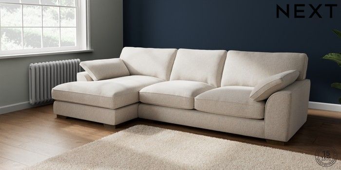7.2.10 Stamford Grand Relaxed Sit Large Sofa Chaise - Left Hand Chunky Marl Oyster Large Square Angle - Mid | Made Click here to use our website with more accessibility support, for example screen readers