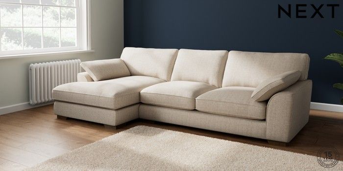 7.2.10 Stamford Grand Relaxed Sit Large Sofa Chaise - Left Hand Chunky Weave Mid Natural Large Square Angle - Mid | Made Click here to use our website with more accessibility support, for example screen readers