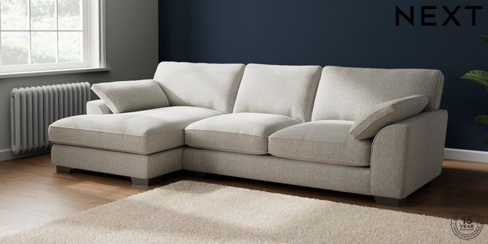 7.2.10 Stamford Grand Relaxed Sit Large Sofa Chaise - Left Hand Multi Weave Light Blue Large Square Angle - Gunmetal | Made Click here to use our website with more accessibility support, for example screen readers