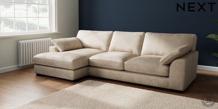 7.2.10 Stamford Grand Relaxed Sit Large Sofa Chaise - Left Hand Plush Chenille Light Natural Large Square Angle - Dark | Made Click here to use our website with more accessibility support, for example screen readers