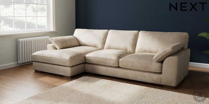 7.2.10 Stamford Grand Relaxed Sit Large Sofa Chaise - Left Hand Plush Chenille Light Natural Large Square Angle - Mid | Made Click here to use our website with more accessibility support, for example screen readers