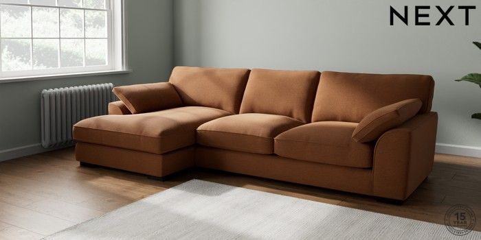 7.2.10 Stamford Grand Relaxed Sit Large Sofa Chaise - Left Hand Ripple Chenille Mid Rust Brown Large Square Angle - Dark | Made Click here to use our website with more accessibility support, for example screen readers