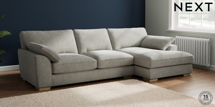 7.2.10 Stamford Grand Relaxed Sit Large Sofa Chaise - Right Hand Chunky Chenille Light Grey Large Square Angle - Light | Made Click here to use our website with more accessibility support, for example screen readers
