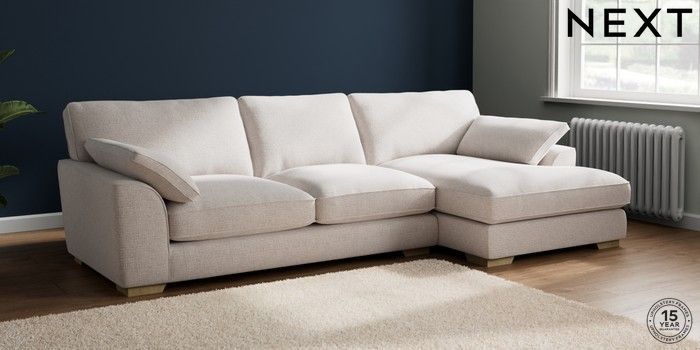 7.2.10 Stamford Grand Relaxed Sit Large Sofa Chaise - Right Hand Multi Weave Oyster Large Square Angle - Light | Made Click here to use our website with more accessibility support, for example screen readers