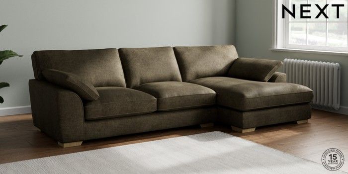 7.2.10 Stamford Grand Relaxed Sit Large Sofa Chaise - Right Hand Plush Chenille Moss Green Large Square Angle - Light | Made Click here to use our website with more accessibility support, for example screen readers