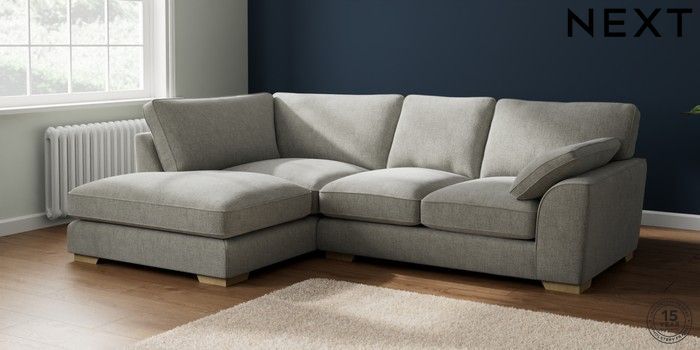 7.2.10 Stamford Grand Relaxed Sit Medium Corner Chaise - Left Hand Chunky Chenille Light Grey Large Square Angle - Light | Made Click here to use our website with more accessibility support, for example screen readers