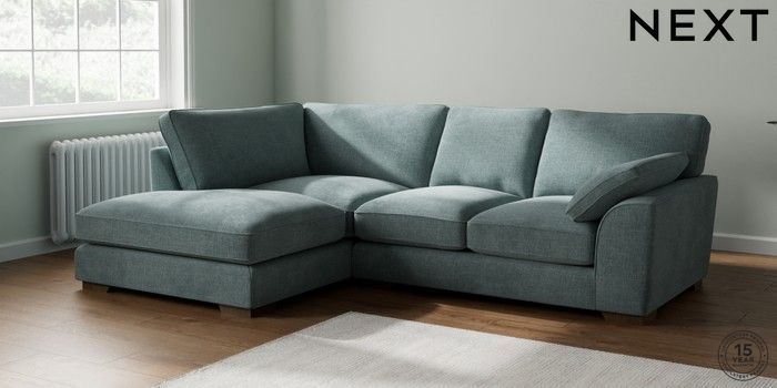 7.2.10 Stamford Grand Relaxed Sit Medium Corner Chaise - Left Hand Chunky Chenille Light Teal Green Large Square Angle - Mid | Made Click here to use our website with more accessibility support, for example screen readers