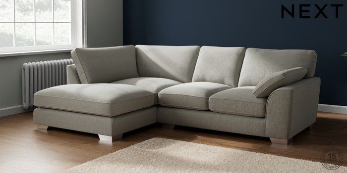 7.2.10 Stamford Grand Relaxed Sit Medium Corner Chaise - Left Hand Chunky Texture Dove Large Square Angle - Chrome Metal | Made Click here to use our website with more accessibility support, for example screen readers
