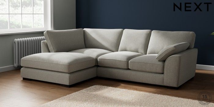 7.2.10 Stamford Grand Relaxed Sit Medium Corner Chaise - Left Hand Chunky Texture Dove Large Square Angle - Dark | Made Click here to use our website with more accessibility support, for example screen readers