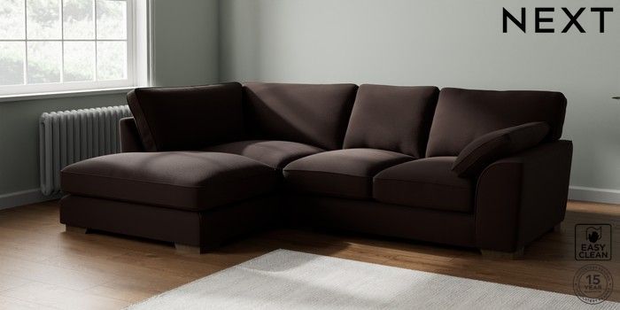 7.2.10 Stamford Grand Relaxed Sit Medium Corner Chaise - Left Hand Fine Chenille Easy Clean Chocolate Brown Large Square Angle - Mid | Made Click here to use our website with more accessibility support, for example screen readers