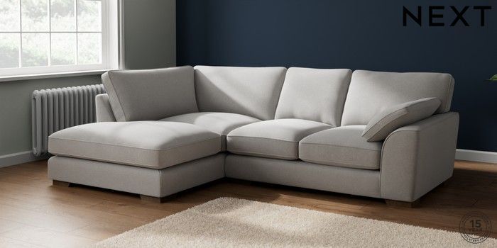 7.2.10 Stamford Grand Relaxed Sit Medium Corner Chaise - Left Hand Natural Mix Light Grey Large Square Angle - Mid | Made Click here to use our website with more accessibility support, for example screen readers