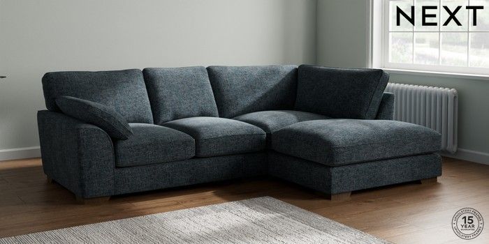 7.2.10 Stamford Grand Relaxed Sit Medium Corner Chaise - Right Hand Chunky Chenille Dark Navy Blue Large Square Angle - Mid | Made Click here to use our website with more accessibility support, for example screen readers
