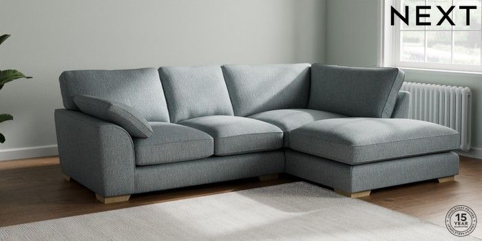 7.2.10 Stamford Grand Relaxed Sit Medium Corner Chaise - Right Hand Chunky Weave Mid Blue Large Square Angle - Light | Made Click here to use our website with more accessibility support, for example screen readers