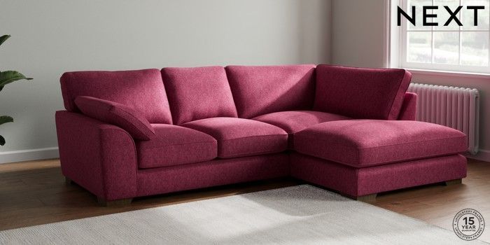 7.2.10 Stamford Grand Relaxed Sit Medium Corner Chaise - Right Hand Cotswold Chenille Dark Raspberry Pink Large Square Angle - Mid | Made Click here to use our website with more accessibility support, for example screen readers