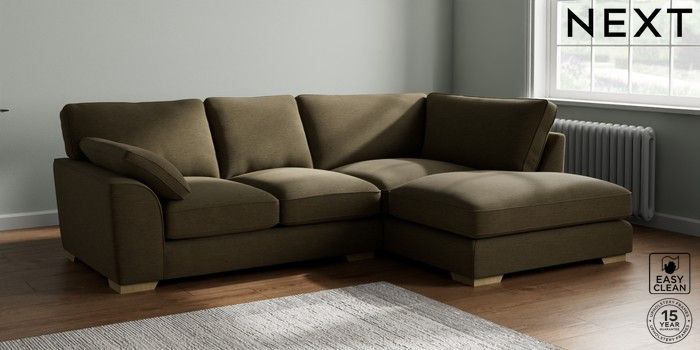 7.2.10 Stamford Grand Relaxed Sit Medium Corner Chaise - Right Hand Fine Chenille Easy Clean Dark Moss Green Large Square Angle - Light | Made Click here to use our website with more accessibility support, for example screen readers