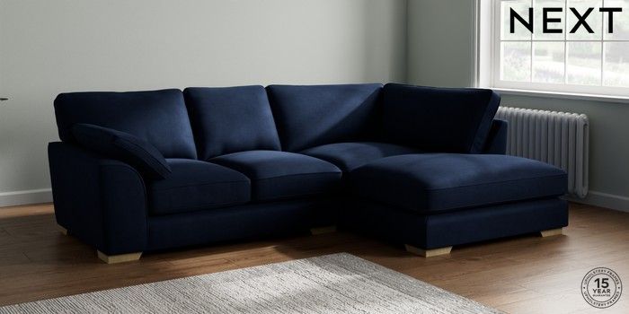 7.2.10 Stamford Grand Relaxed Sit Medium Corner Chaise - Right Hand Luxe Chenille Navy Blue Large Square Angle - Light | Made Click here to use our website with more accessibility support, for example screen readers