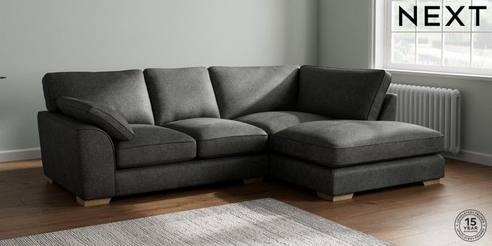 7.2.10 Stamford Grand Relaxed Sit Medium Corner Chaise - Right Hand Plush Chenille Dark Grey Large Square Angle - Light | Made Click here to use our website with more accessibility support, for example screen readers