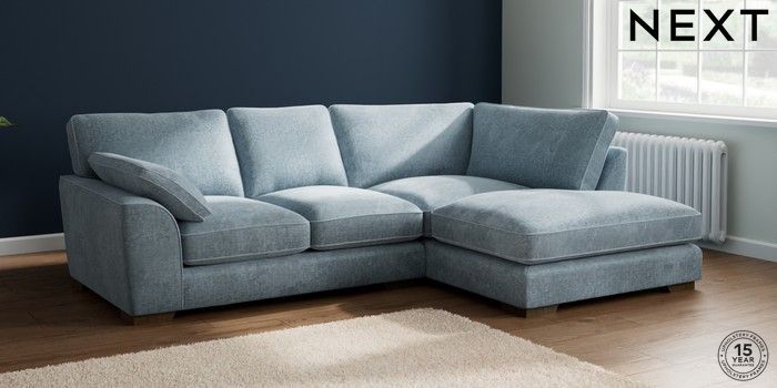 7.2.10 Stamford Grand Relaxed Sit Medium Corner Chaise - Right Hand Plush Chenille Light Blue Large Square Angle - Mid | Made Click here to use our website with more accessibility support, for example screen readers