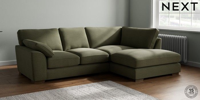7.2.10 Stamford Grand Relaxed Sit Medium Corner Chaise - Right Hand Ripple Chenille Mid Moss Green Large Square Angle - Mid | Made Click here to use our website with more accessibility support, for example screen readers