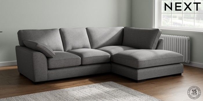 7.2.10 Stamford Grand Relaxed Sit Medium Corner Chaise - Right Hand Studio Chenille Mid Grey Large Square Angle - Dark | Made Click here to use our website with more accessibility support, for example screen readers