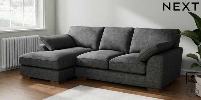 7.2.10 Stamford Grand Relaxed Sit Medium Sofa Chaise - Left Hand Boucle Weave Easy Clean Charcoal Grey Large Square Angle - Mid | Made Click here to use our website with more accessibility support, for example screen readers
