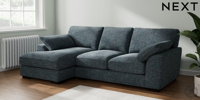 7.2.10 Stamford Grand Relaxed Sit Medium Sofa Chaise - Left Hand Chunky Chenille Dark Navy Blue Large Square Angle - Dark | Made Click here to use our website with more accessibility support, for example screen readers