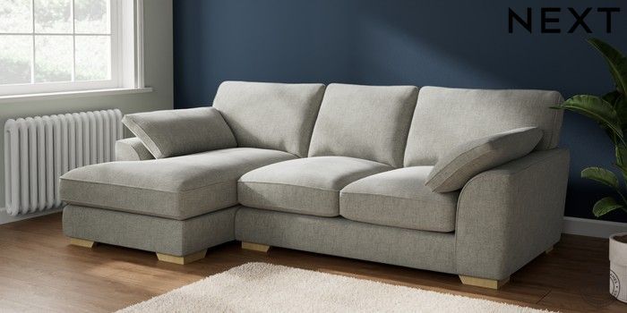 7.2.10 Stamford Grand Relaxed Sit Medium Sofa Chaise - Left Hand Chunky Chenille Light Grey Large Square Angle - Light | Made Click here to use our website with more accessibility support, for example screen readers