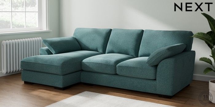 7.2.10 Stamford Grand Relaxed Sit Medium Sofa Chaise - Left Hand Chunky Chenille Mid Teal Green Large Square Angle - Dark | Made Click here to use our website with more accessibility support, for example screen readers