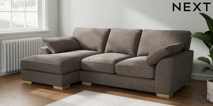 7.2.10 Stamford Grand Relaxed Sit Medium Sofa Chaise - Left Hand Chunky Chenille Mink Brown Large Square Angle - Light | Made Click here to use our website with more accessibility support, for example screen readers