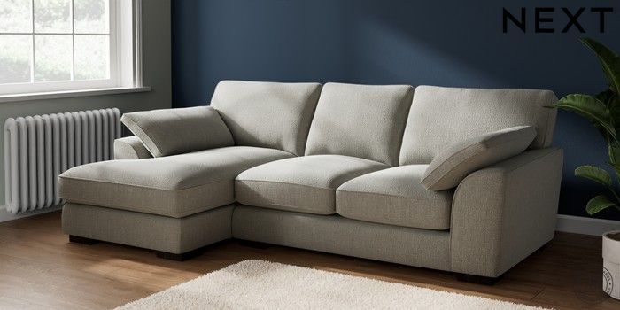7.2.10 Stamford Grand Relaxed Sit Medium Sofa Chaise - Left Hand Chunky Texture Dove Large Square Angle - Dark | Made Click here to use our website with more accessibility support, for example screen readers