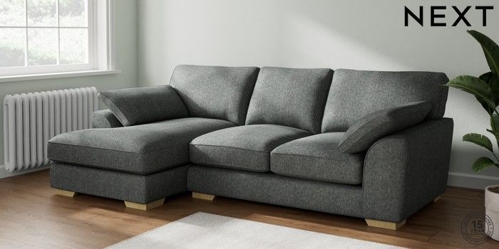 7.2.10 Stamford Grand Relaxed Sit Medium Sofa Chaise - Left Hand Cotswold Chenille Dark Grey Large Square Angle - Light | Made Click here to use our website with more accessibility support, for example screen readers
