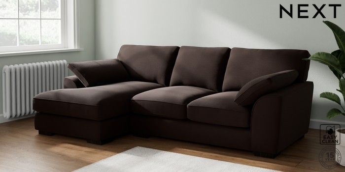 7.2.10 Stamford Grand Relaxed Sit Medium Sofa Chaise - Left Hand Fine Chenille Easy Clean Chocolate Brown Large Square Angle - Dark | Made Click here to use our website with more accessibility support, for example screen readers