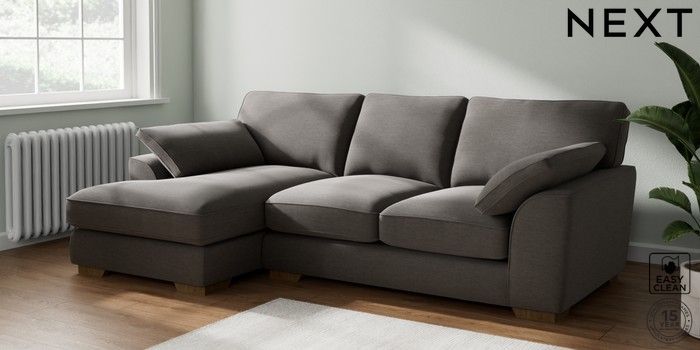 7.2.10 Stamford Grand Relaxed Sit Medium Sofa Chaise - Left Hand Fine Chenille Easy Clean Dark Smoke Grey Large Square Angle - Mid | Made Click here to use our website with more accessibility support, for example screen readers