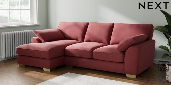 7.2.10 Stamford Grand Relaxed Sit Medium Sofa Chaise - Left Hand Fine Chenille Easy Clean Mid Pink Large Square Angle - Brushed Brass | Made Click here to use our website with more accessibility support, for example screen readers