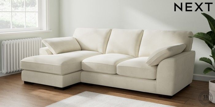 7.2.10 Stamford Grand Relaxed Sit Medium Sofa Chaise - Left Hand Luxe Chenille Oyster Large Square Angle - Dark | Made Click here to use our website with more accessibility support, for example screen readers