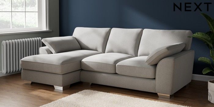 7.2.10 Stamford Grand Relaxed Sit Medium Sofa Chaise - Left Hand Natural Mix Light Grey Large Square Angle - Chrome Metal | Made Click here to use our website with more accessibility support, for example screen readers